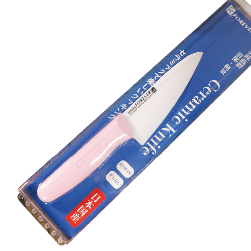 日本產 陶瓷廚房刀 粉色手柄 白色刀片 14cm