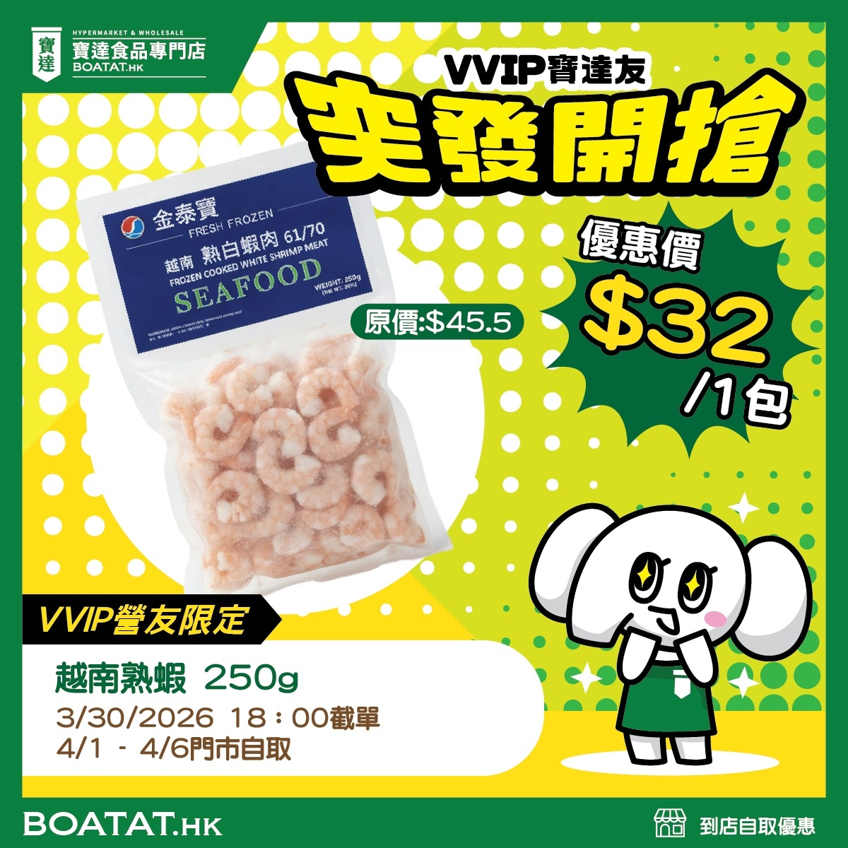 金泰寶-越南熟白蝦 61 70 250g (截單日: 2026年3月30日晚上6:00)