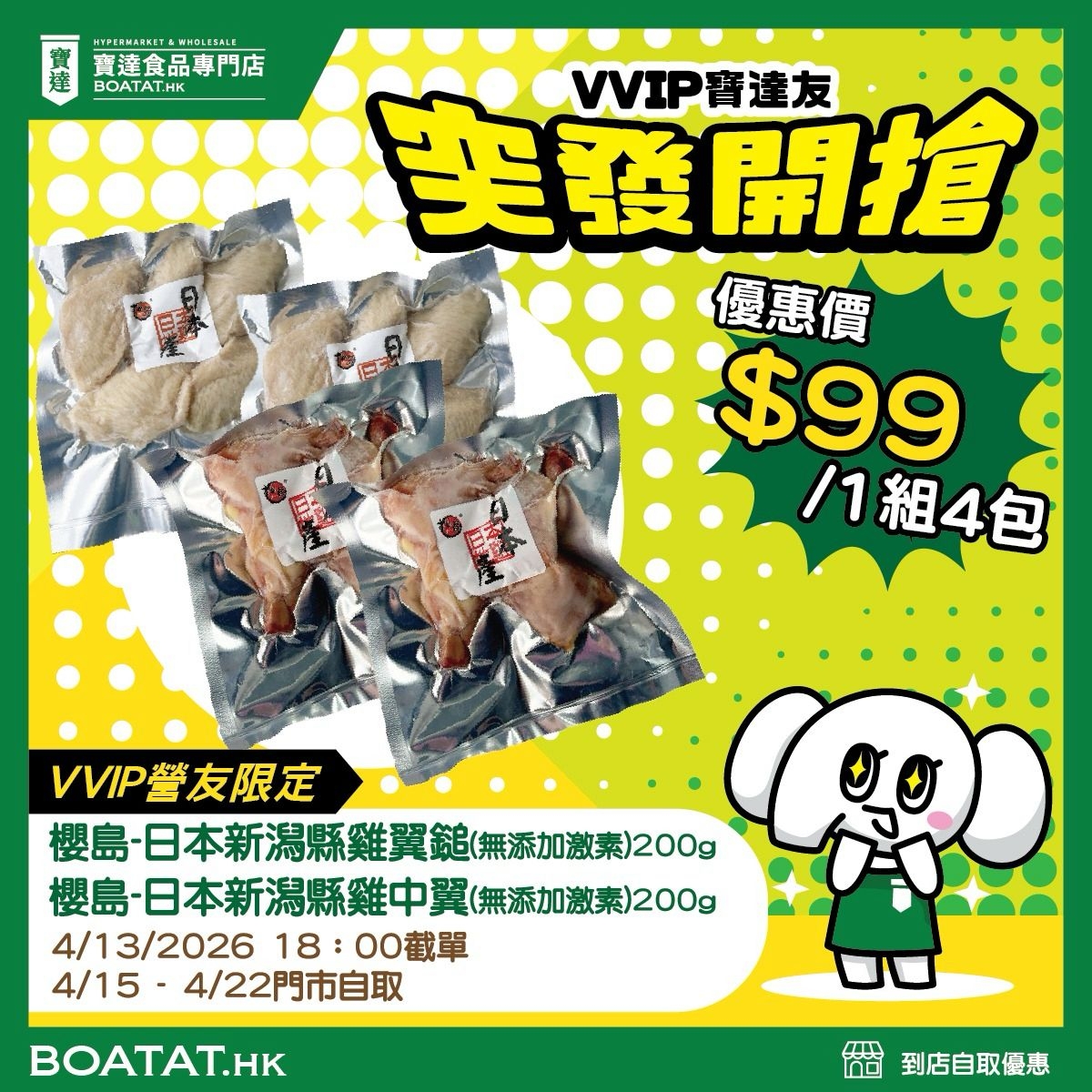 🐔 櫻島 - 日本新潟縣 雞膇 (無添加激素) 200g x 2包 🐔 櫻島 - 日本新潟縣 雞中翼 (無添加激素) 200g x 2包 (截單日:2026年4月13日晚上6:00)